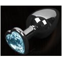 Графитовая анальная пробка с голубым кристаллом в виде сердечка - 6 см