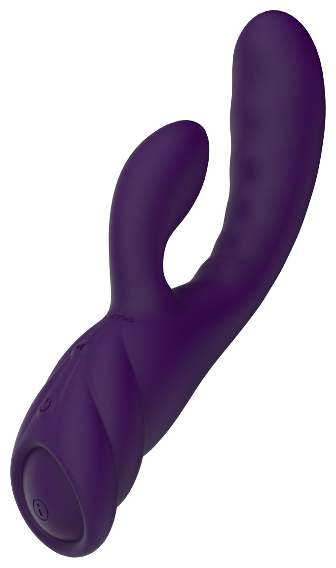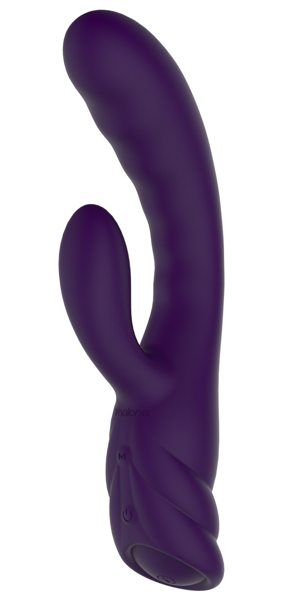 Фиолетовый вибратор с клиторальным стимулятором Nalone PureX2 - 20,7 см