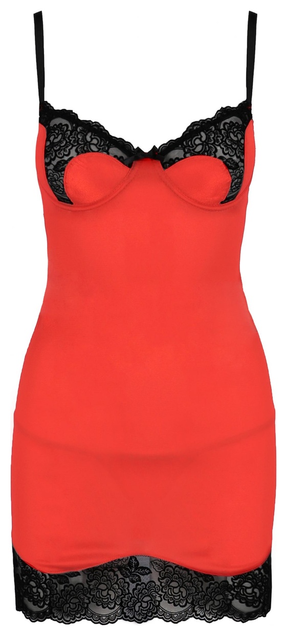 Сорочка Polina красного цвета. Сорочка декорирована красивым ажурным кружевом, на спине застежка, бретели регулируются. В комплекте: сорочка, трусики-стринги.