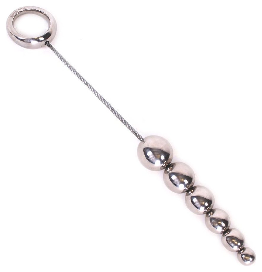 Серебристые металлические подвижные анальные шарики с кольцом изготовлены из нержавеющей стали с качественной зеркальной полировкой. Экзотическая анальная игрушка шарики-бусы с подвижными перемещающимися шариками для ярких ощущений. Необходимо нежно и медленно вводить каждый шарик и в момент кульминации также аккуратно извлечь эту цепочку-бусы-шарики, держась за кольцо Anal Movable 6-Balls With Ring. Необходимо быть аккуратным, поскольку трос на котором держатся шарики выполнен из металлической проволоки. Изделие предназначено для профессионалов. Рабочая длина - 27 см.