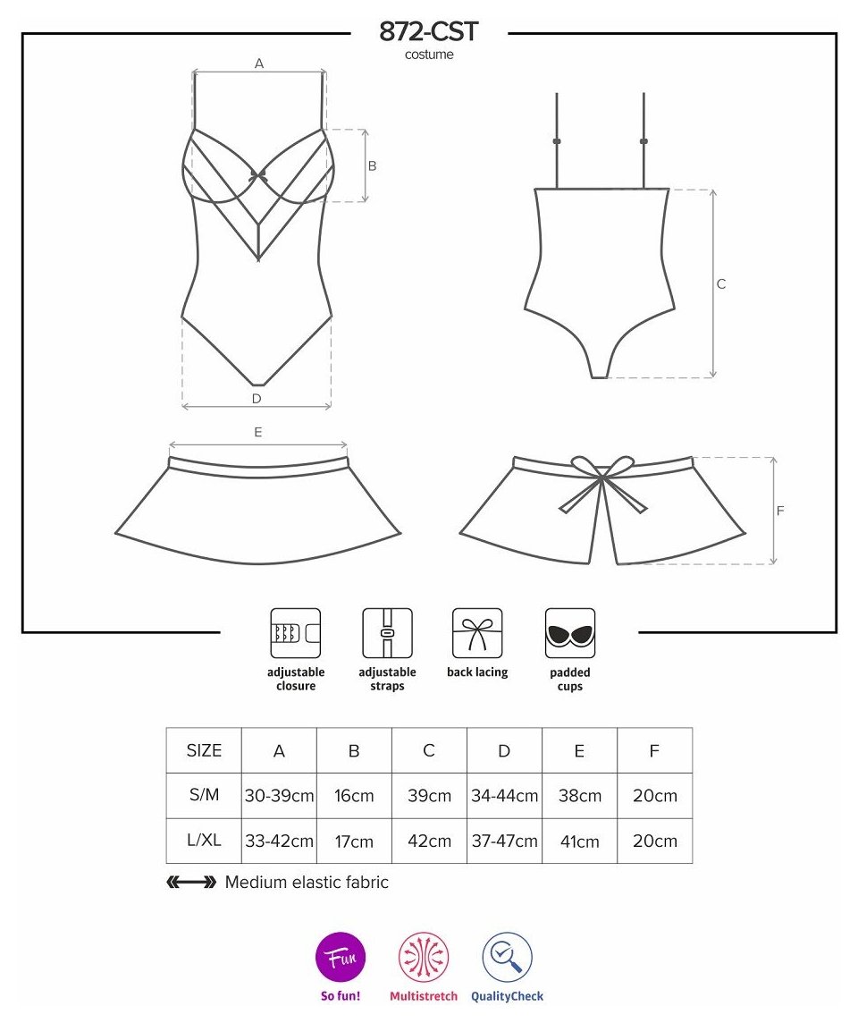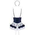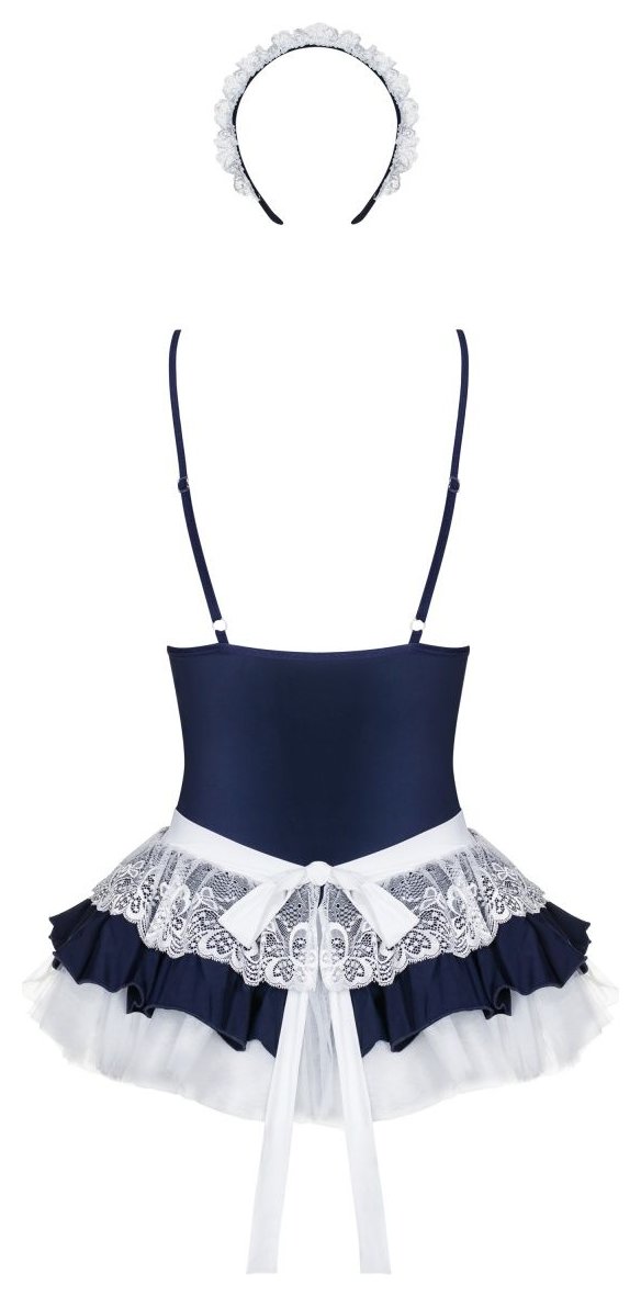 Кружась по комнате с метёлкой в руках и медленно нагибаясь к пылесосу, эта озорная горничная заставит своего хозяина восхититься. Но не проделанной работой, а красотой своего тела! Обворожительная и невероятно сексуальная в своей сине-белой ультракороткой униформе, она заставит мужчину дать ей хорошие чаевые – миллион поцелуев и сотню страстных объятий. Эротический костюм состоит из боди, фартука и головного убора. Боди с регулируемыми бретелями и вырезом под грудью. Костюм декорирован кружевом. В комплекте: боди, фартук и головной убор.
