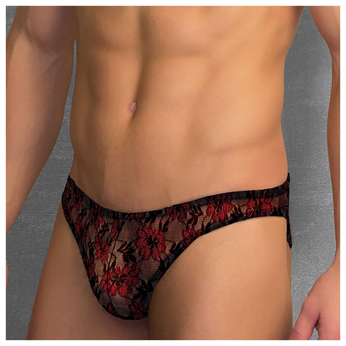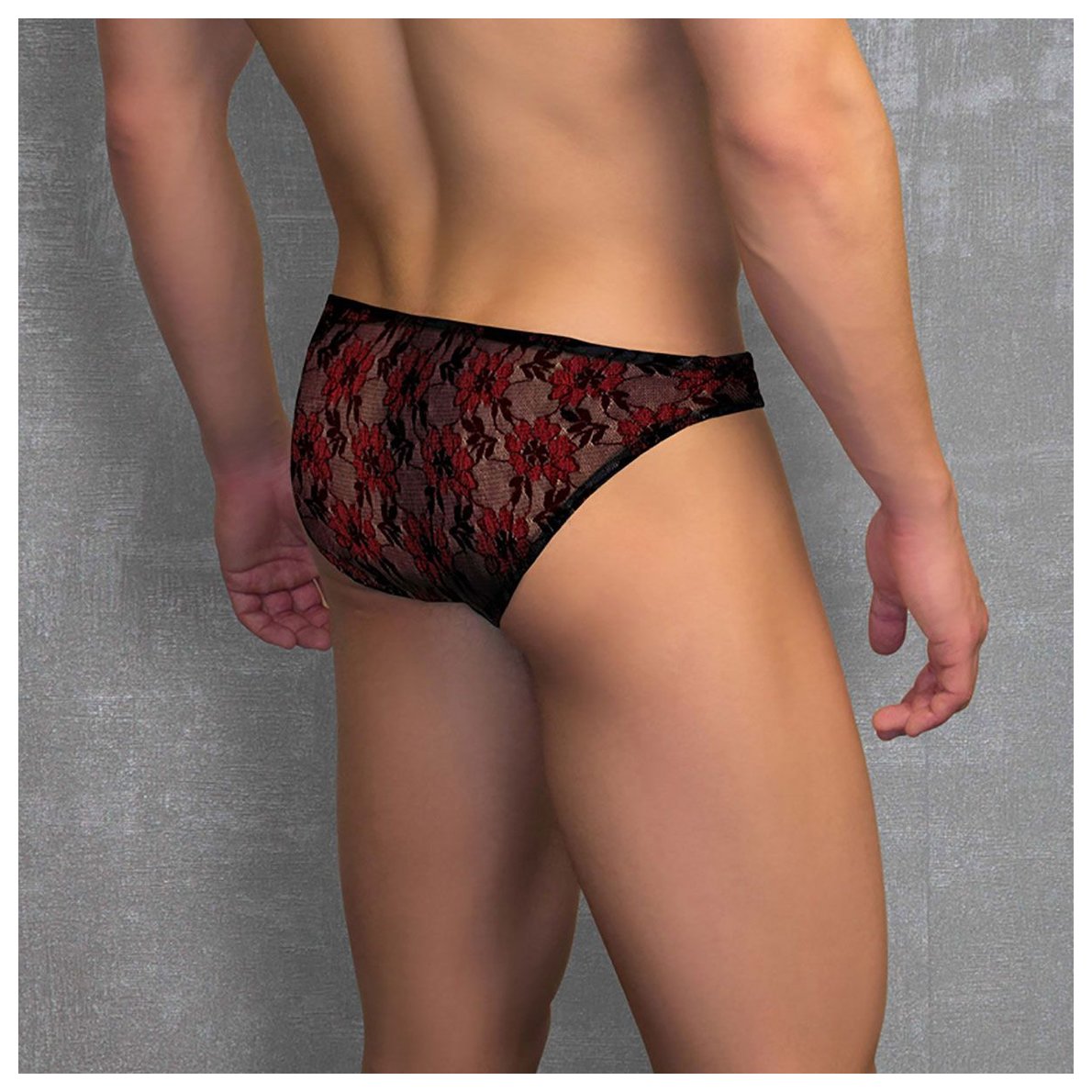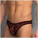 Эффектные и очень сексуальные трусы-слипы из кружевного материала для экстравагантных мужчин. Передняя панель в один слой, без подкладки.