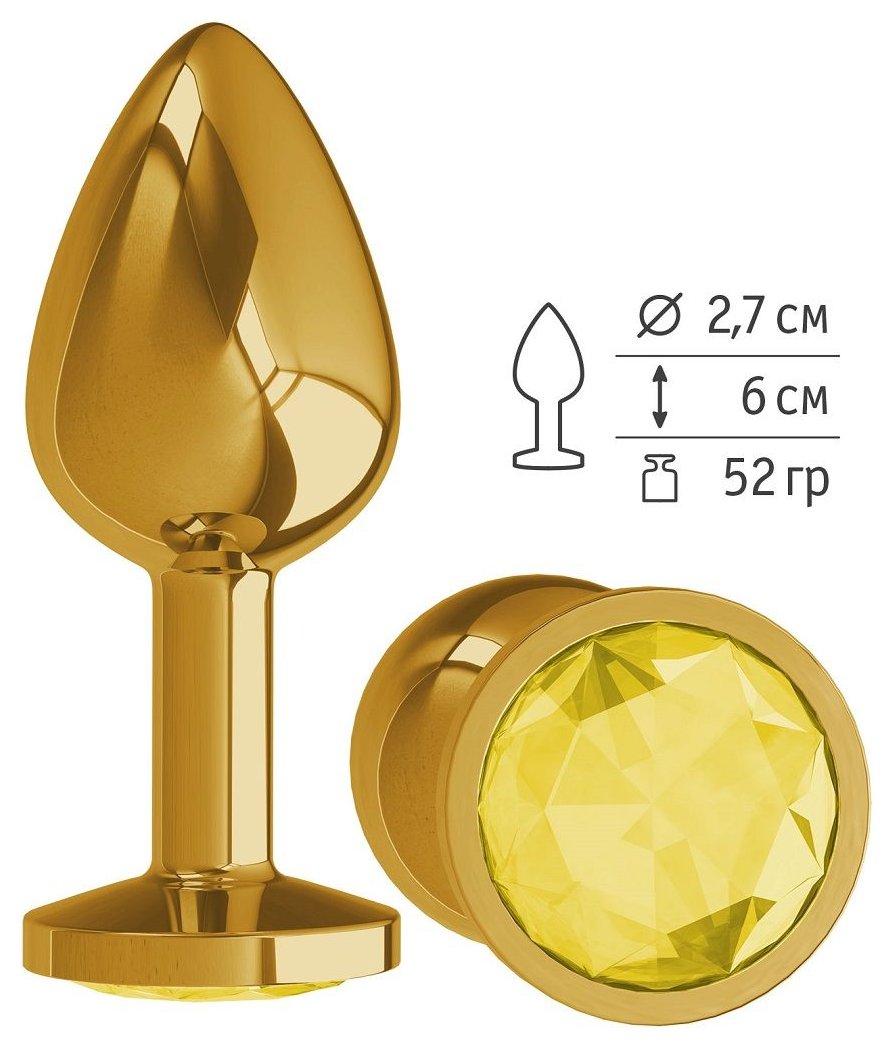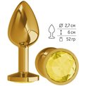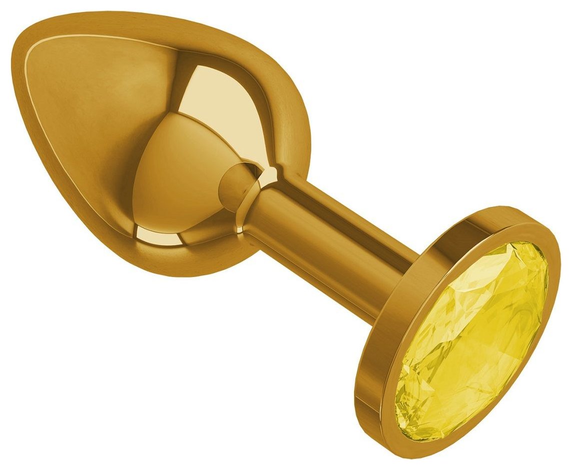 Золотистая конусовидная анальная пробка с желтым кристаллом - 7 см