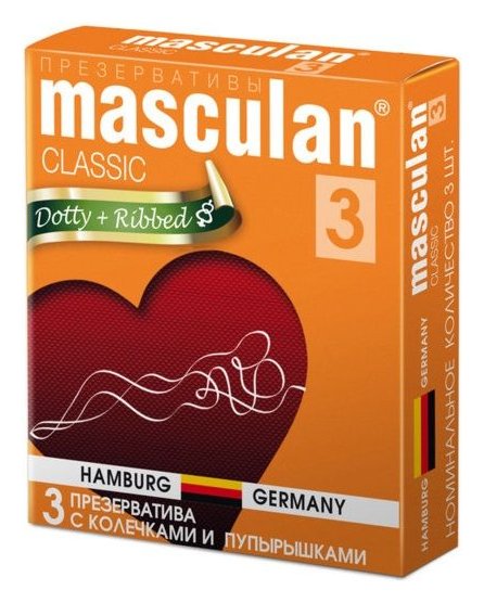 Презервативы Masculan Classic 3 Dotty Ribbed с колечками и пупырышками - 3 шт