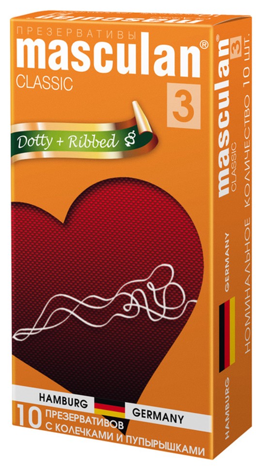 Презервативы Masculan Classic 3 Dotty Ribbed с колечками и пупырышками - 10 шт
