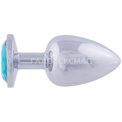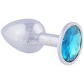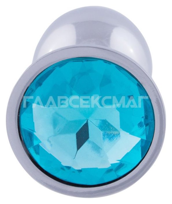 Серебристая анальная пробка с голубым кристаллом. Рабочая длина - 6 см. Вес - 55 гр.