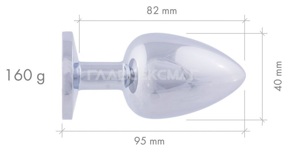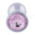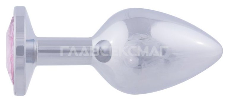 Серебристая анальная пробка с розовым кристаллом. Рабочая длина - 8,2 см. Вес - 160 гр.