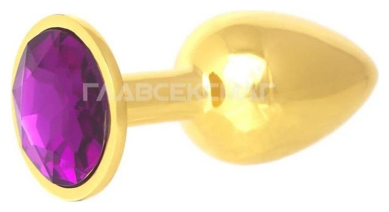 Золотистая анальная пробка с фиолетовым кристаллом - 7 см