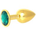 Золотистая анальная пробка с зелёным кристаллом - 7 см