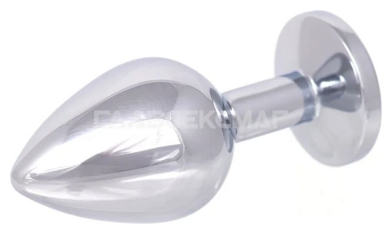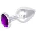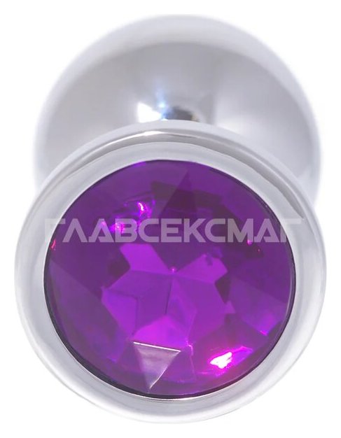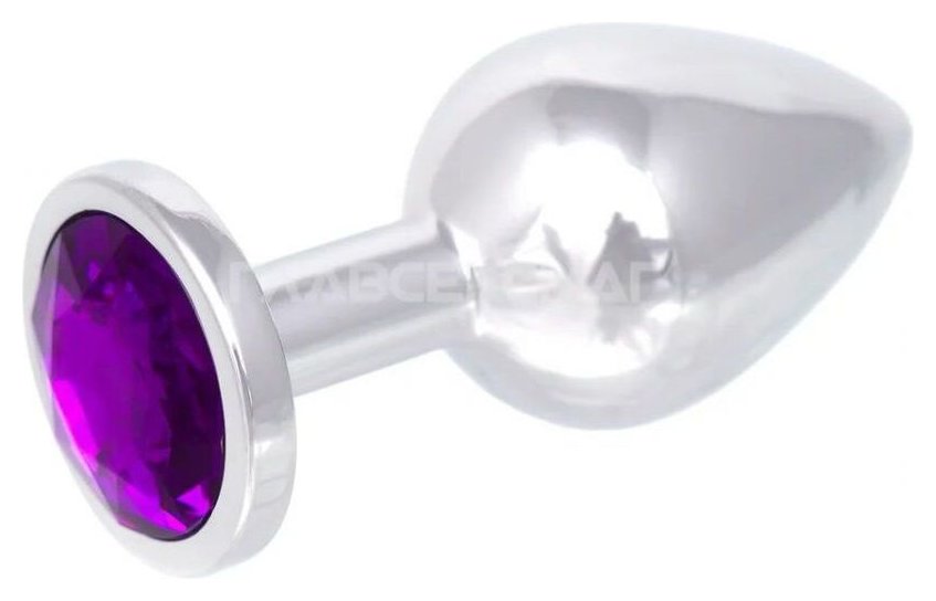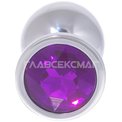 Серебристая анальная пробка с фиолетовым кристаллом. Рабочая длина - 7 см. Вес - 92 гр.