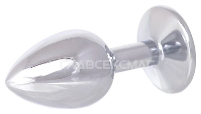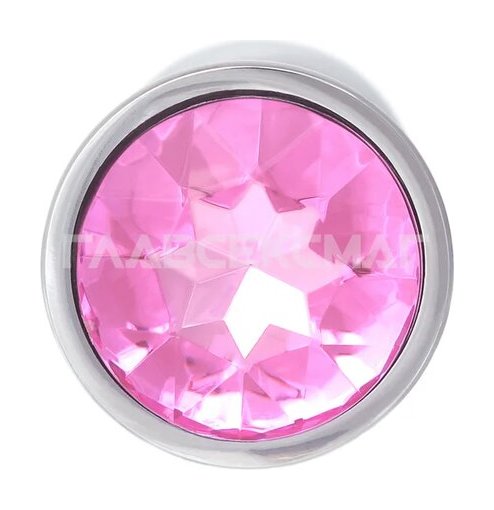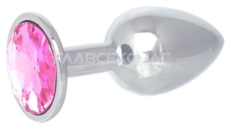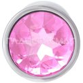 Серебристая анальная пробка с розовым кристаллом. Рабочая длина - 6 см. Вес - 55 гр.