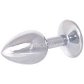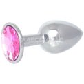 Серебристая анальная втулка с розовым кристаллом в основании - 7 см