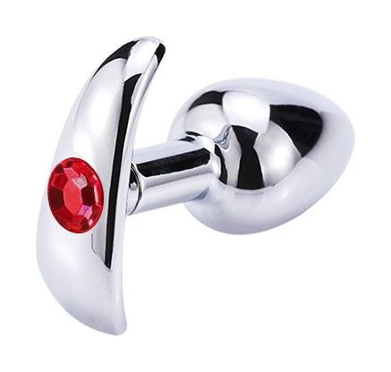 Серебристая анальная пробка для ношения с красным кристаллом - 7 см