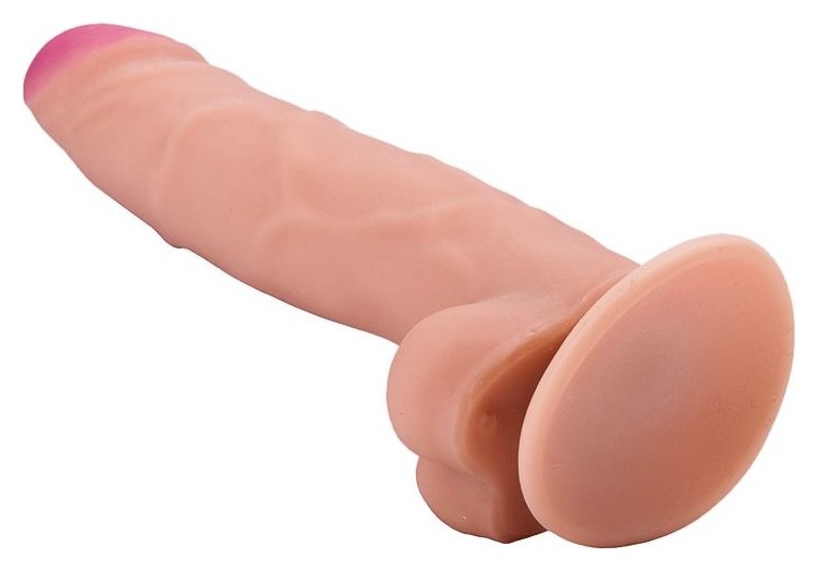 Телесный фаллоимитатор на присоске с выраженным рельефом - 19 см