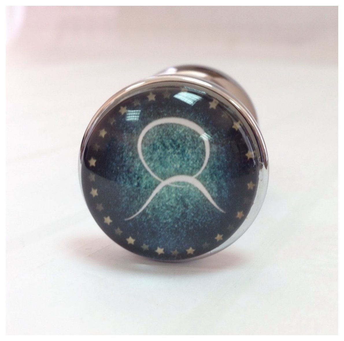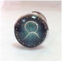 Серебристая анальная пробка с зеленым кристаллом и знаком зодиака - Телец