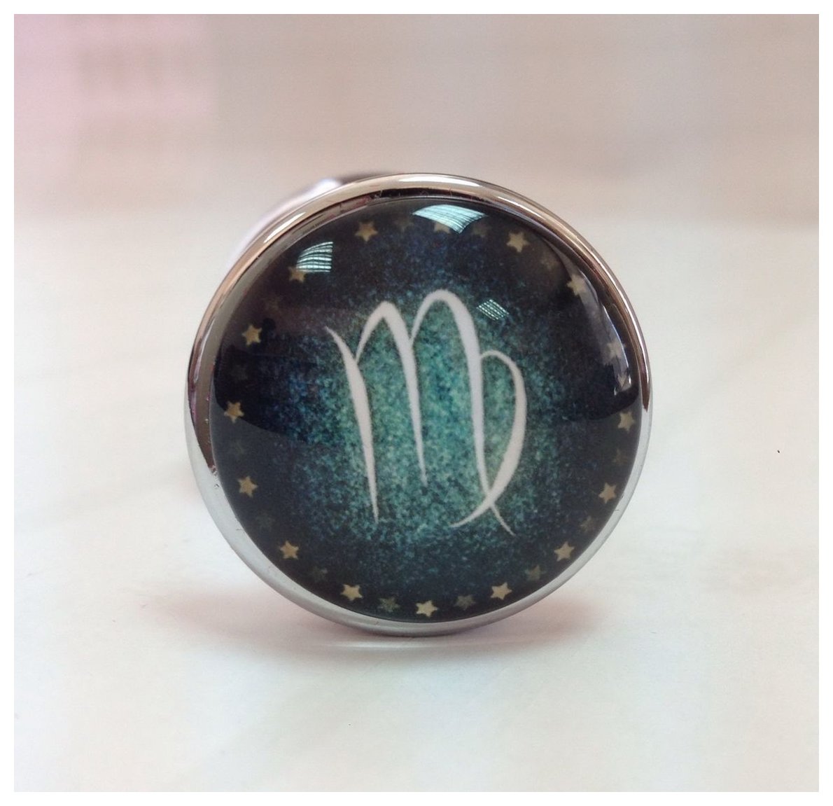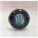 Серебристая анальная пробка с зеленым кристаллом и знаком зодиака - Дева