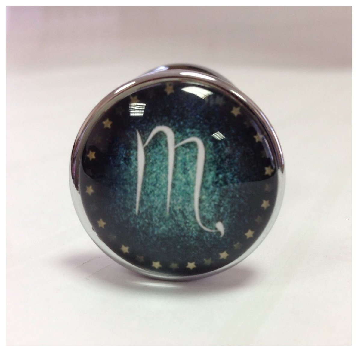 Серебристая анальная пробка с зеленым кристаллом и знаком зодиака - Скорпион