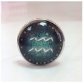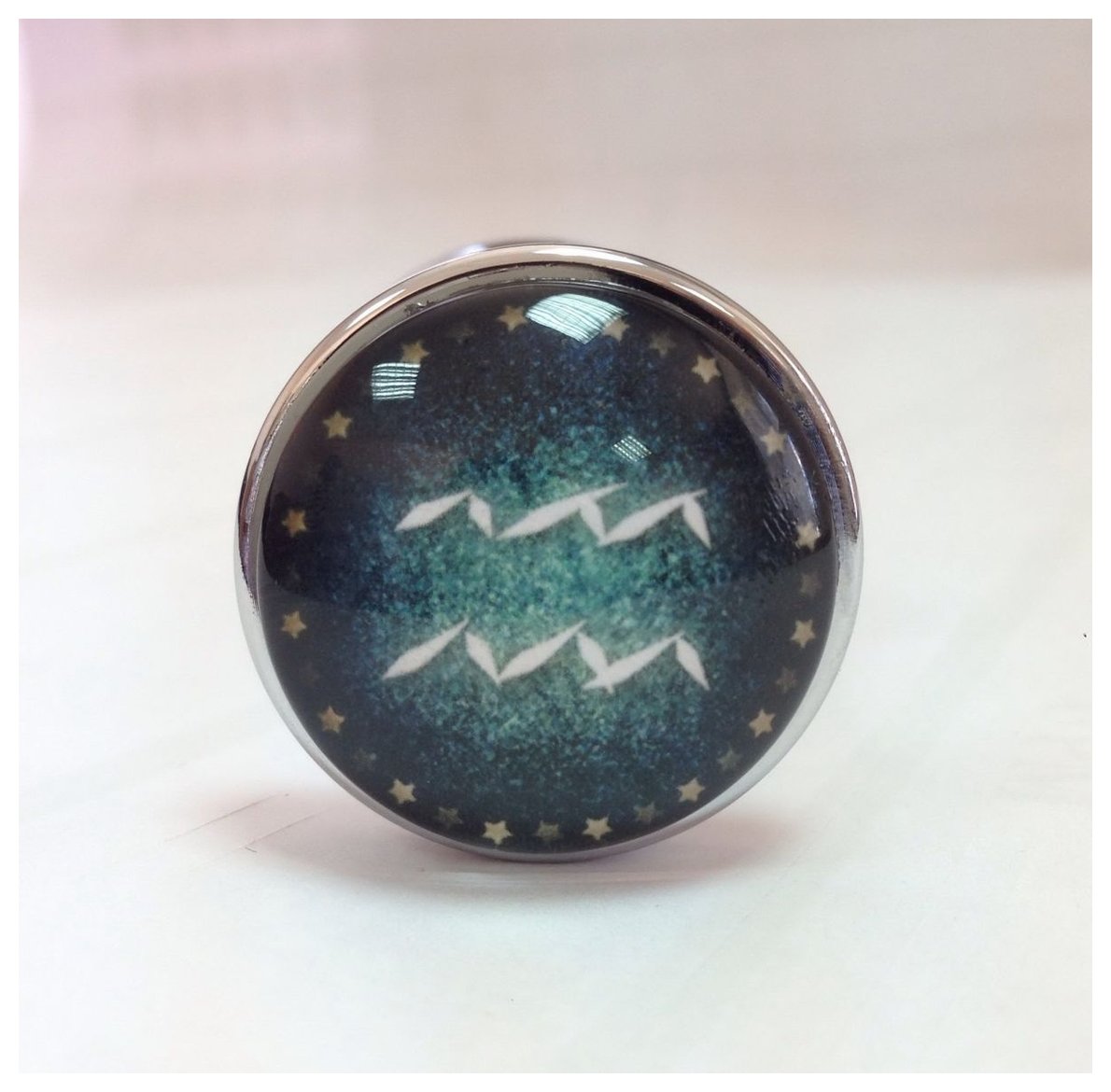 Серебристая анальная пробка с зеленым кристаллом и знаком зодиака - Водолей