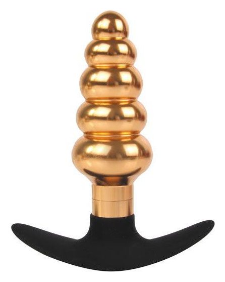 Золотисто-черная анальная втулка в виде ёлочки - 10,9 см
