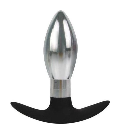 Каплевидная анальная втулка серебристо-черного цвета - 9,6 см
