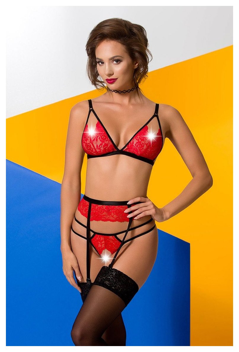 Кружевной комплект Salome с контрастной отделкой. В комплекте: лиф, трусики-стринги, пояс.