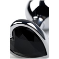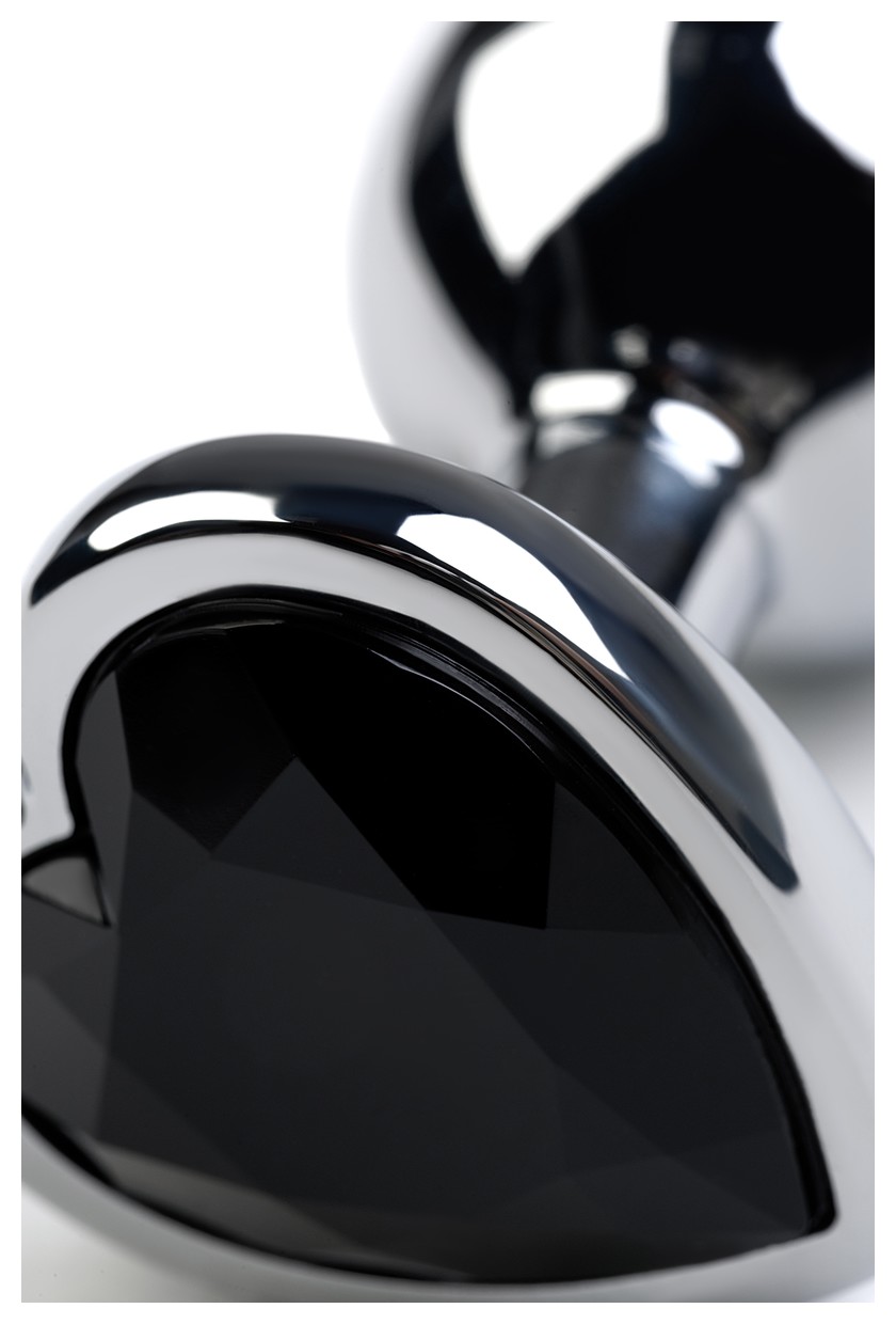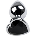 Серебристая коническая анальная пробка с черным кристаллом-сердечком - 7 см.
