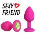Силиконовая анальная втулка из серии Sexy Friend позволит по-новому взглянуть на сексуальное удовольствие! Интимный аксессуар выполнен в классической конусной форме, которая гарантирует деликатное и комфортное введение. Для контроля глубины проникновения втулка снабжена удобным ограничителем. Анальная пробка выполнена в яркой цветовой гамме, изготовлена из гипоаллергенного материала - силикона и украшена кристаллом.