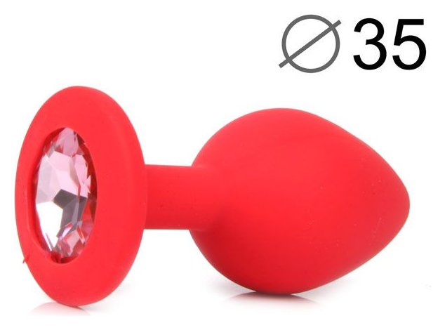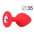 Красная конусовидная анальная пробка с розовым кристаллом - 8 см
