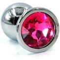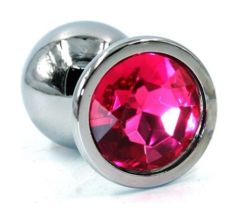 Серебристая анальная пробка с розовым кристаллом - 8 см