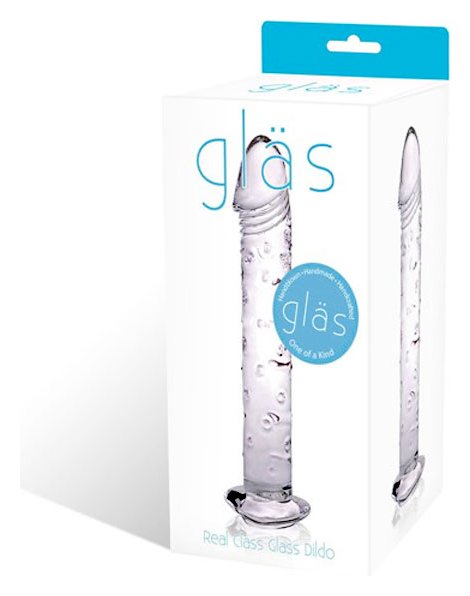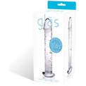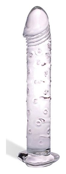 Прямой небольшой стимулятор из чистого прозрачного стекла с головкой реалистичной формы. Тело фаллоса покрыто небольшими точечками для нежного массажа. Ограничительное основание стимулятора выполнено в форме сердечка. Длина от основания - 15 см. Диаметр - 3,5 см.