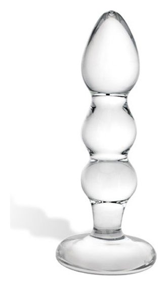 Гладкая прохладная елочка из прозрачного закаленного стекла. Абсолютно гигиеничная, совместима с лубрикантами, на любых основах. Высота от основания: 15,5 см. Диаметр: от 2,5 до 3,5 см.