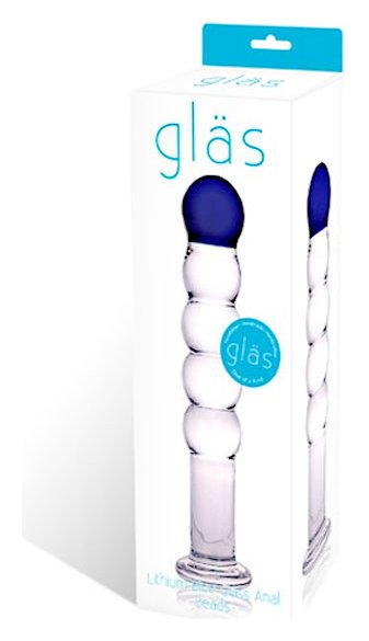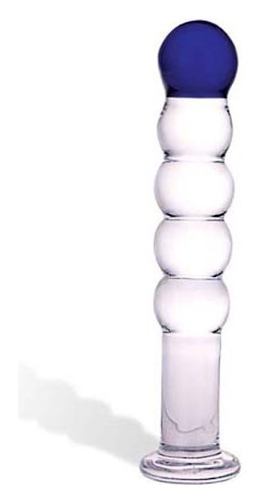 нальная пробка с 5 круглыми звеньями из прозрачного стекла. Верхнее звено-шарик ярко-синего цвета. Длина: 17,5 см. Диаметр: 3,5 см.