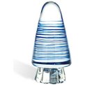 Анальный конус из стекла с мерцающим светодиодом внутри. Поверхность конуса украшена голубыми полосами. Рекомендуем дополнительно использовать шнурок, который нужно обвязать под самой широкой частью конуса - он поможет безопасно извлечь конус после использования. Шнурок в комплект не входит. Высота конуса - 9,5 см. Максимальный диаметр - 4 см. Рабоатет от батареек типа таблетка - в комплекте.