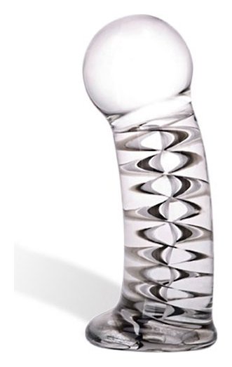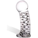 Толстый стимулятор ручной работы из прозрачного стекла. Внутри ствола фаллоса - черно-белые спирали, обвивающие белый стержень. Изюминка стимулятора - большая круглая головка. Длина от основания: 13 см. Диаметр головки: 5 см. Диаметр тела фаллоса: 3,5 см.