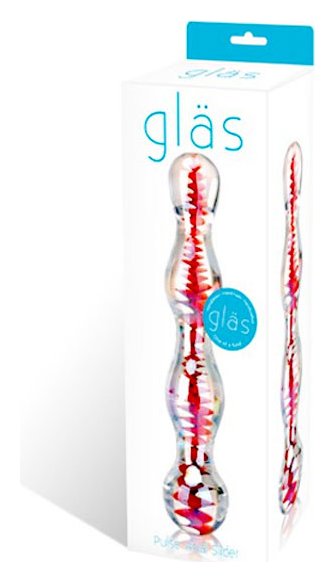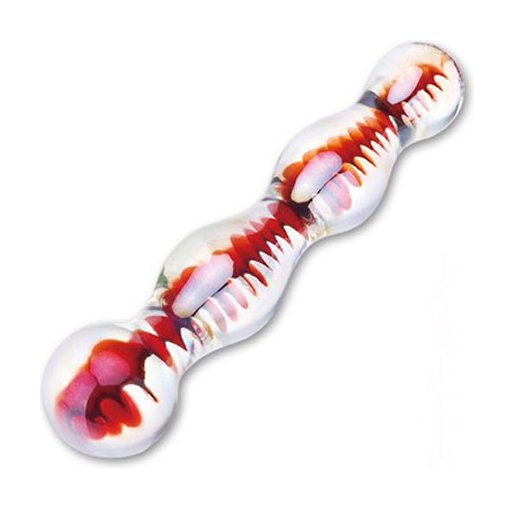 Безумно красивая покрытая перламутром стеклянная палочка для анальных игр! Стимулятор из 4 звеньев разной формы и диаметра. По всей длине прозрачного стимулятора с золотым отливом внутри объемный серпантин красного цвета. Общая длина: 19 см. Диаметр: от 2 до 4 см.