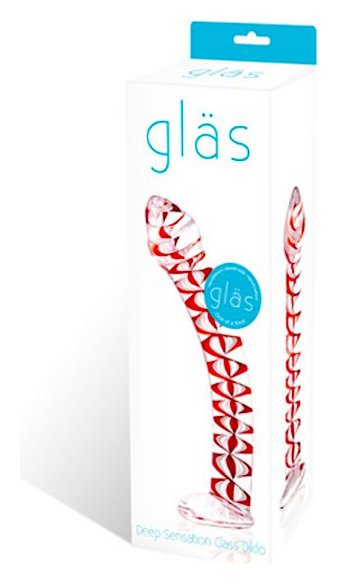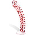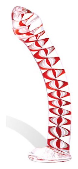 Изящный изогнутый фаллоимитатор на плоской подставке с внутренней красно-белой узорчатой спиралью. Плавная головка увенчивает этот красивейший фаллос. Длина фаллоса от подставки: 20 см. Диаметр: 2,8 см.