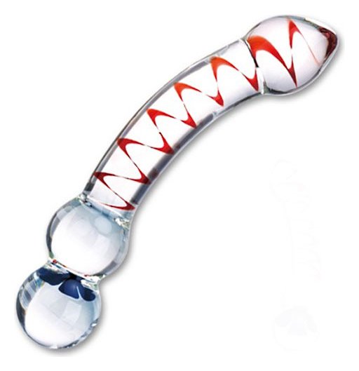 Двусторонний стеклянный фаллос с декоративной спиралью внутри