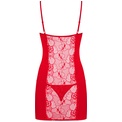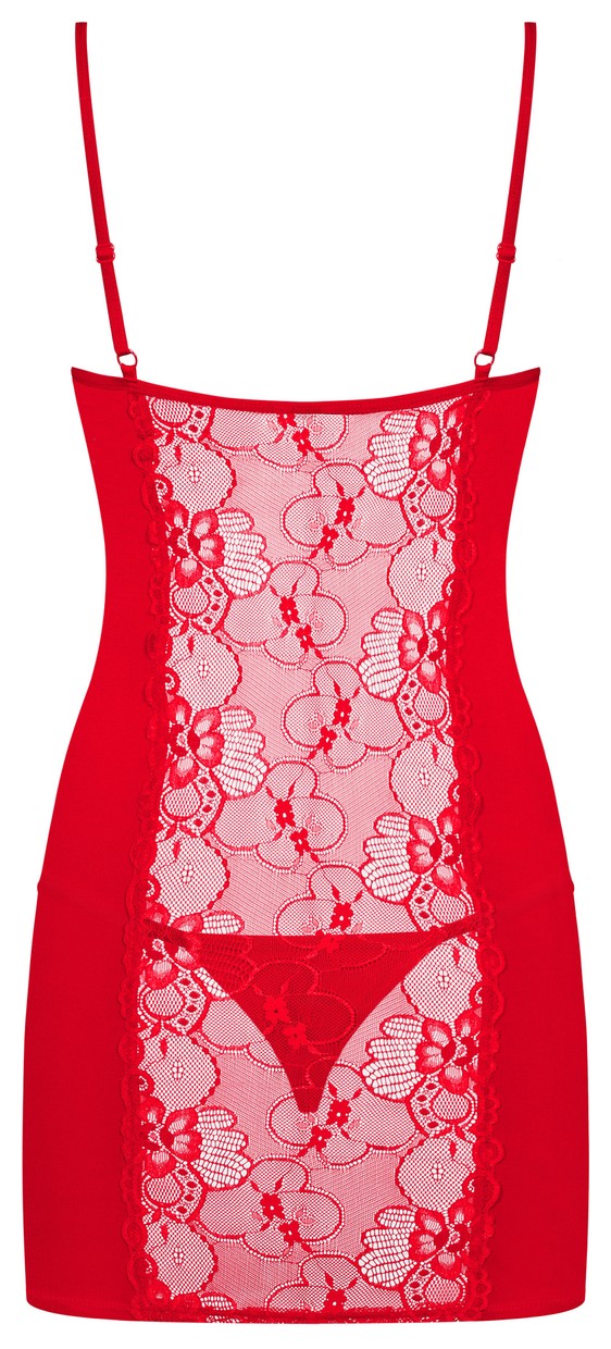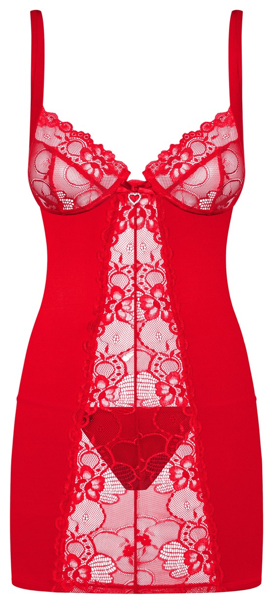 Соблазнительная сорочка из стрейч-атласного материала и кружева, в зоне декольте сорочка украшена подвеской со стразами в форме сердечка. Чашка мягкая на косточке. В комплект входят трусики стринги. В комплекте: сорочка и трусики-стринги.