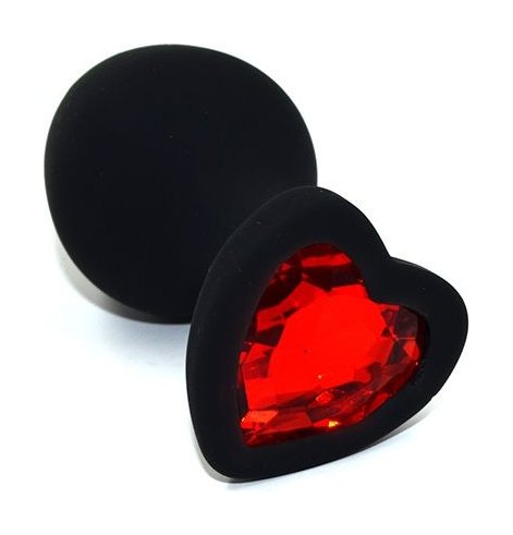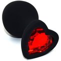 Черная анальная силиконовая пробка с красным кристаллом в форме сердца - 8,8 см.