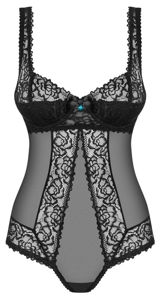 Полупрозрачное боди выполнено из эластичной сеточки в сочетании с красивым кружевом. Боди с чашкой на косточках, на спинке регулируемая застежка.