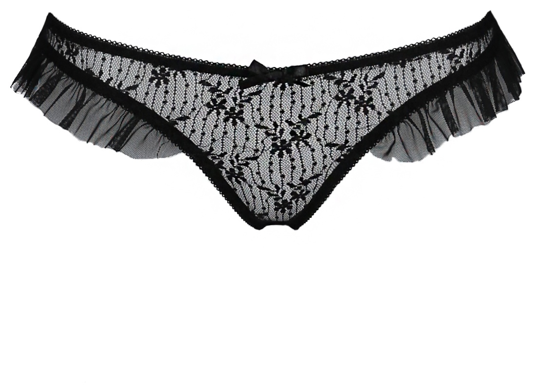 Женские полупрозрачные трусики с вышивкой. Декорированы полупрозрачной оборкой по бокам.
