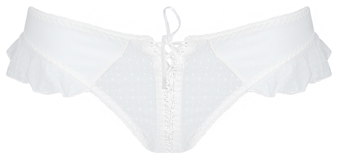 Полупрозрачные трусики в горошек. Спереди декорированы шнуровкой.