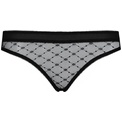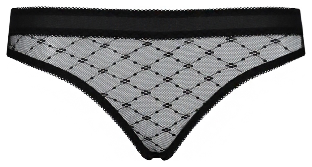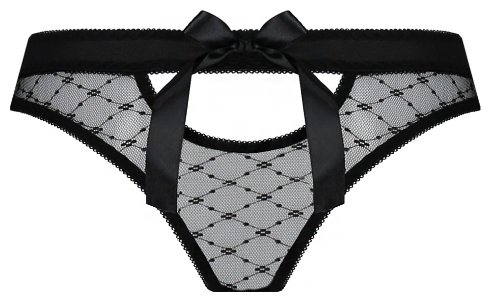 Полупрозрачные трусики с геометрическим рисунком. Сзади есть вырез, который украшен атласным бантиком.