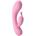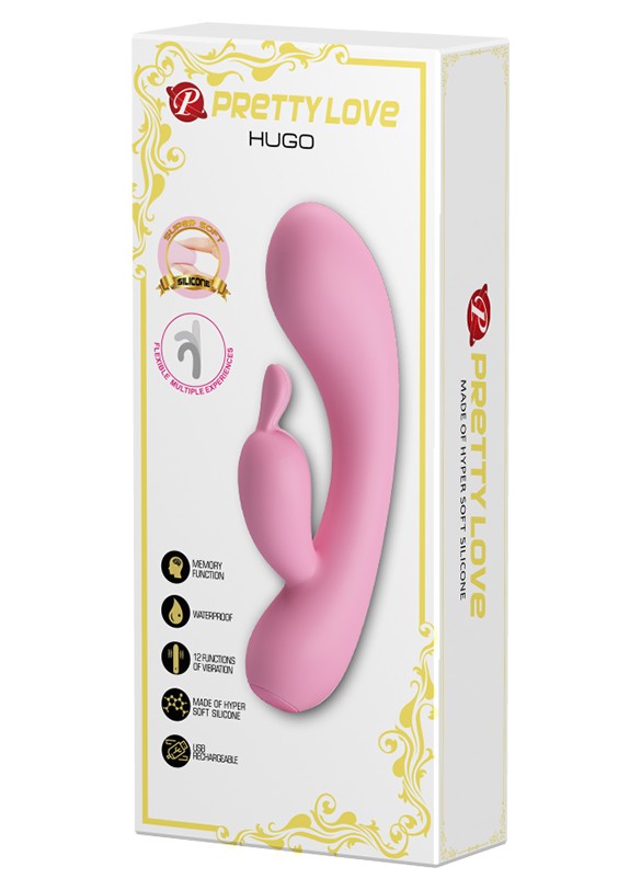 Нежно-розовый вибратор Hugo с клиторальным отростком - 16,5 см