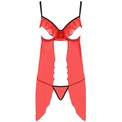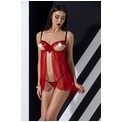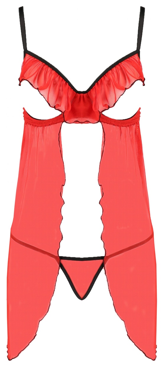 Эротическая полупрозрачная сорочка Cherry. Лиф открытый, декорирован рюшами. Бретельки и застежка на спинке регулируются. В комплекте: сорочка и трусики-стринги.