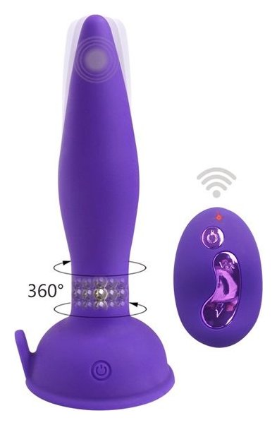 Анальный стимулятор, обладающий 5 режимами вибрации и ротации. В основании игрушки встроены металлические бусины для большей стимуляции. Удобно управляется дистанционным пультом. Имеет устойчивое основание-присоску, которое является так же и ограничительным основанием для безопасного использования. Сама пробочка заряжается от USB (в комплекте), а пульт работает от батареек. Рабочая длина - 14,5 см.