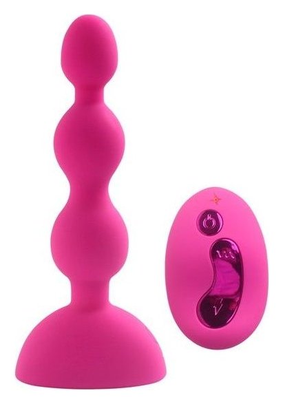 Розовый анальный вибростимулятор Anal Beads S с пультом ДУ - 14,5 см.