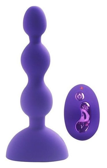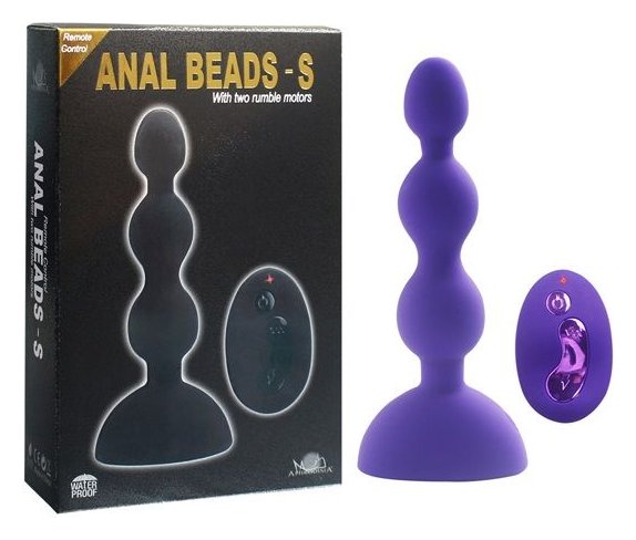 Фиолетовый анальный вибростимулятор Anal Beads S с пультом ДУ - 14,5 см.