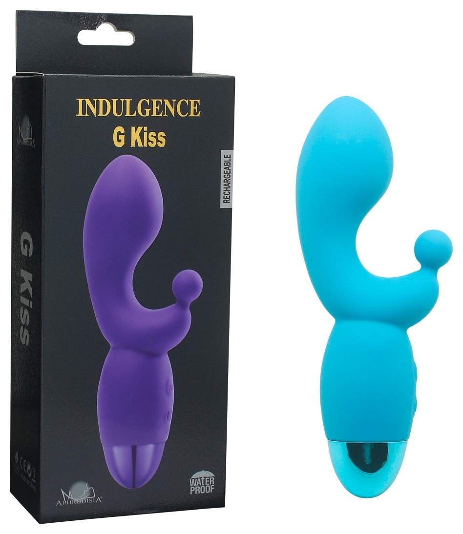 Голубой вибратор INDULGENCE Rechargeable G Kiss - 16,5 см