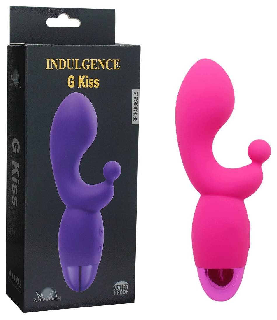 Розовый вибратор INDULGENCE Rechargeable G Kiss - 16,5 см